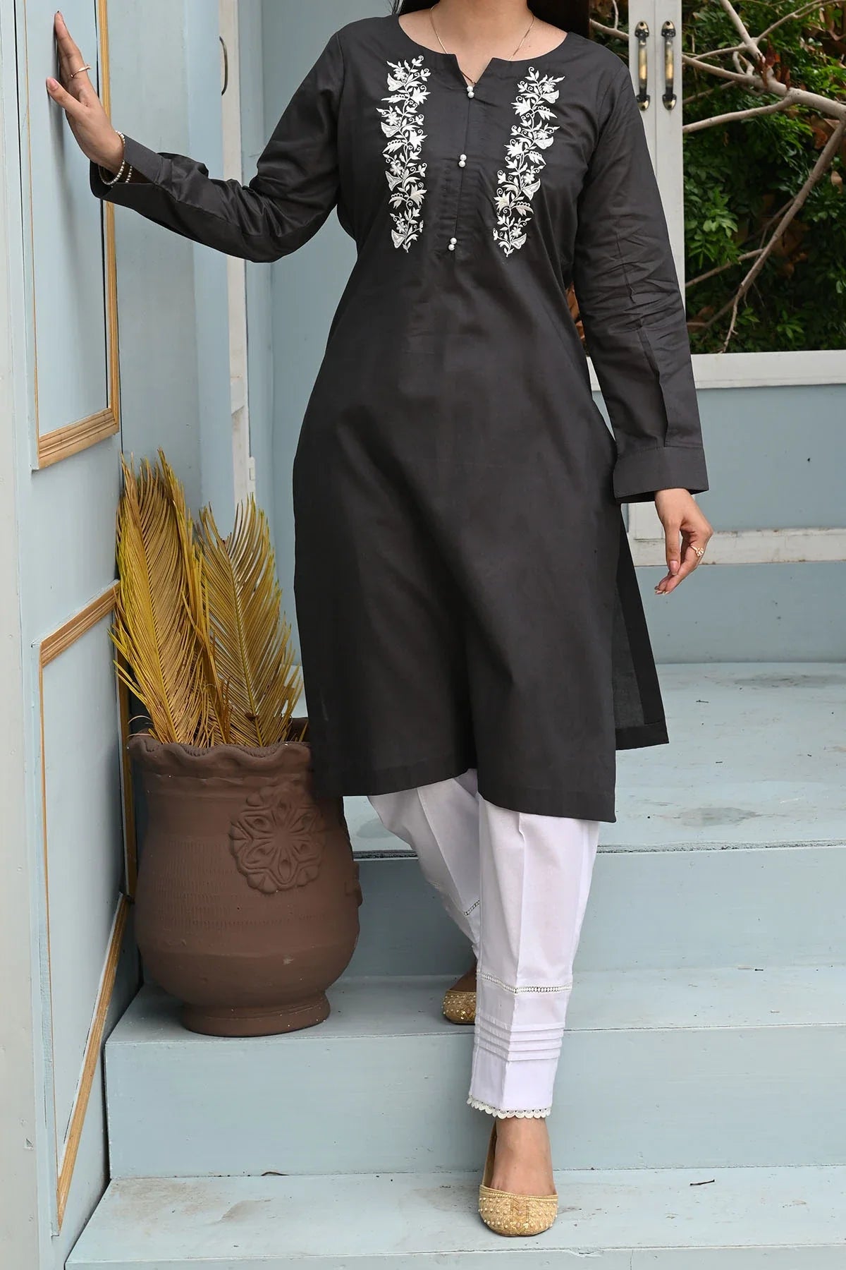 This absolutely gorgeous one-piece Crafted on premium cotton fabric, Contemporary design that brings a stylish edge to casual wear. Bold contrast between the shirt’s fabric color and the embroidery thread. Elevate your style and make a statement that manifest class and confidence.